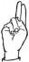 На ћирилици написано РАДНА АРСЕНИЈЕВИЋ састоји се из 16 слова [?]. Исписано ћириличном једноручном азбуком за глувонеме: